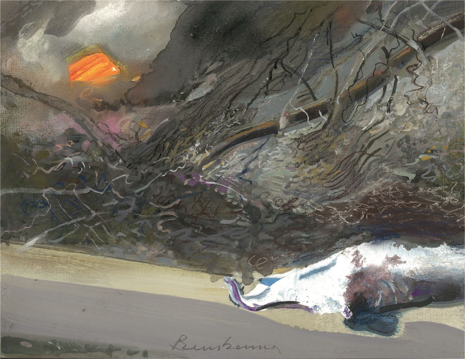 devastação. A atmosfera fuliginosa e fumegante desfoca os contornos e parece