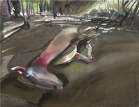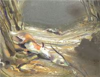 Os animais mortos nos incêndios são representados com cores e tons suaves;